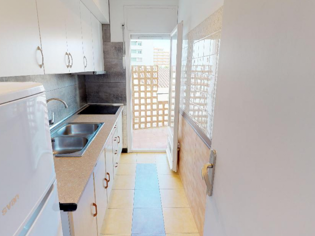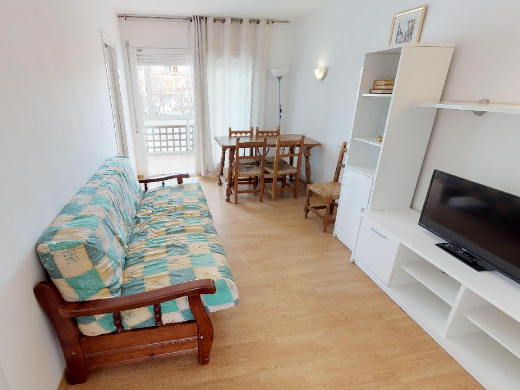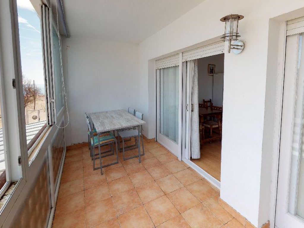 El balcón es el lugar perfecto para relajarse y disfrutar de las vistas al mar mientras cena al aire libre con una mesa y sillas. Este piso es perfecto para aquellos que buscan relajarse en la playa y disfrutar de las vistas al mar de Santa Margarita, Roses.
